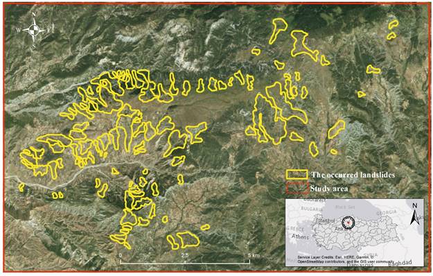 It was determined that, in this study area, a total of 107 landslides occurred (1965-2017), with an average size of 12.9 ha, a minimum of 1.11 ha, and a maximum of 144.76 ha, according to the landslide inventory obtained from the MTA. The total area of landslides within this area is 1 357.68 ha. The landslides that occurred in the area, according to the MTA classification, consist of 430.75 ha of former landslide areas, and 926.93 ha of active landslide areas. It is reasonable to assume that the study area is under constant landslide pressure.