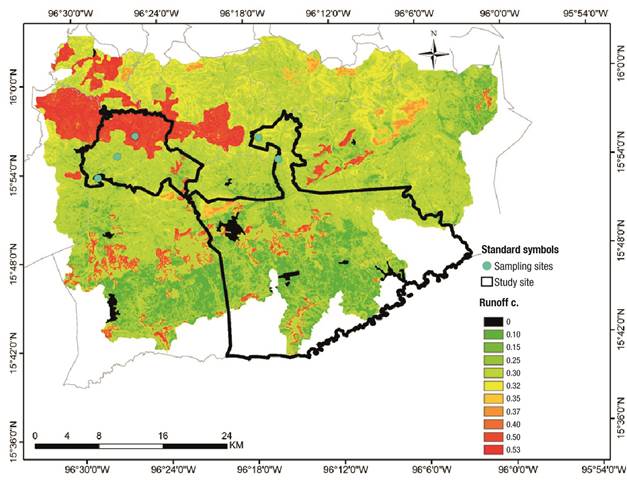 Figure 3 Runoff coefficient (Raws tables) of the Copalita river basin in the coast of Oaxaca, Mexico.