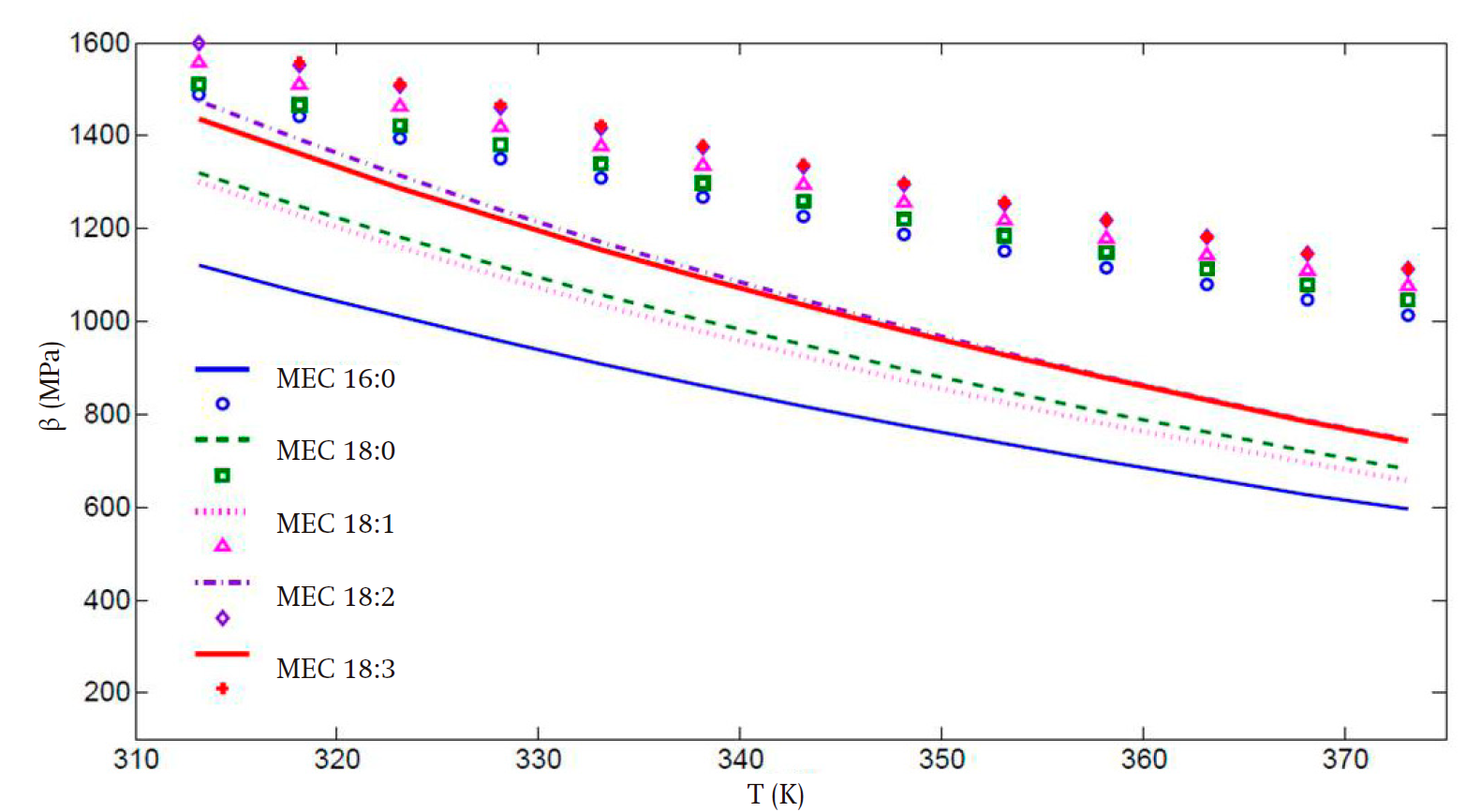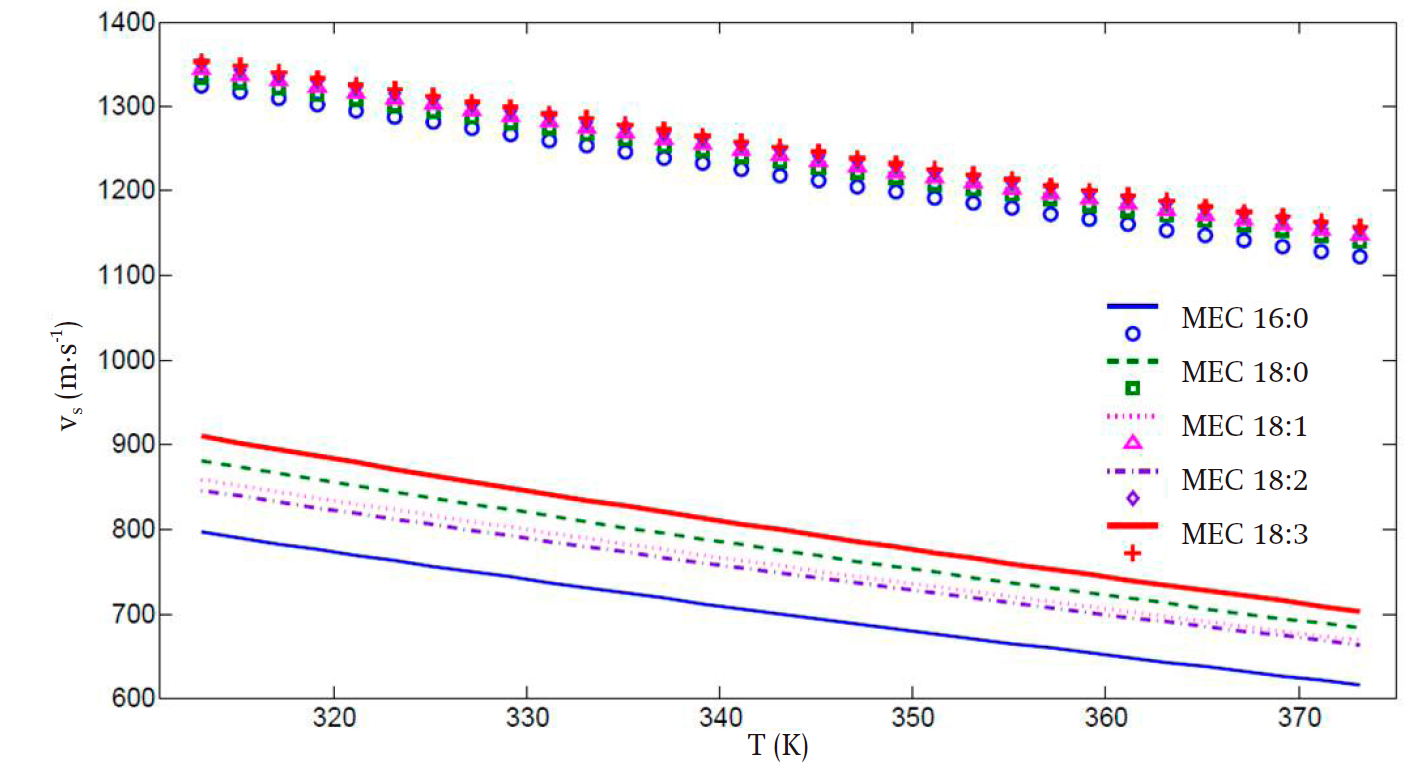 Tat, M. E., & Van Gerpen, J. H. (2003). Speed of sound and isentropic bulk modulus of alkyl monoesters at elevated temperatures and pressures. Journal of the American Oil Cchemists’ Society, 80(12), 1249-1256. doi: 10.1007/s11746-003-0850-6 [ Links ]