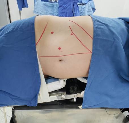 Se efectúa una revisión del lecho quirúrgico y se realiza hemostasia. Se coloca drenaje Blake por uno de los puertos utilizados. Se cierra la aponeurosis de los sitios de punción o incisiones de más de 10 mm.