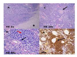Pathological report showed microscopically alteration of the histoarchitecture, whith