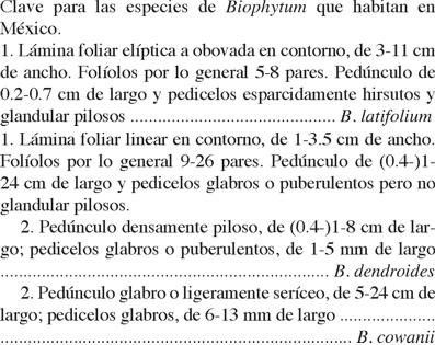 Key words: Biophytum, flora of Mexico, flora of Veracruz, Oxalidaceae, tropical rain forest.
