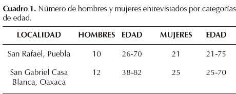Estudio etnobotánico. Para obtener información acerca del aprovechamiento de Agave kerchovei, los entrevistados fueron hombres y mujeres mayores a 20 años (Cuadro 1), considerando que la población adulta está entre los 24 y 58 años (Blanckaert, 2001) y cuya actividad para las mujeres es ser amas de casa encargadas de cocinar y, para los hombres, ser campesinos activos en las labores y rutinas del campo, quienes se ocupan de la recolección. Se usó un cuestionario estructurado de once preguntas (Cuadro 2), diseñado para obtener información en torno al aprovechamiento del escapo y los botones florales (capullos) del agave. El cuestionario inicia con la identificación de la especie de Agave kerchovei y nombres con los que se conoce, mediante fotografías previamente tomadas en San Rafael, Puebla; la segunda sección está enfocada a la forma de aprovechamiento y la tercera, a la ubicación de los sitios de recolecta, intensidad de aprovechamiento, temporalidad y destino de los productos cosechados. Los datos consignados se organizaron para ambas localidades (Cuadro 2), incluyendo el total de entrevistados, la frecuencia de respuesta por pregunta (F) y, por medio del método de consenso de los informantes, se calculó el nivel de fidelidad (NF), el cual permitió conocer la importancia del recurso según la respuesta individual de los entrevistados (Friedman et al., 1986; Avendaño et al., 2006):
