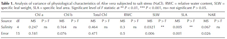 Moderate salt stress on the physiological and morphometric traits of Aloe vera L.