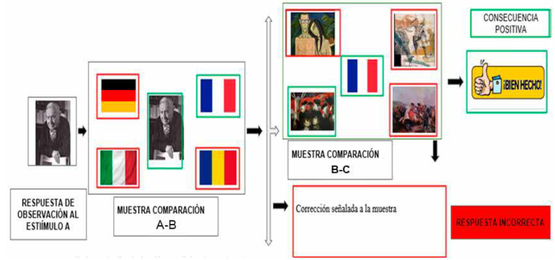 En un estudio posterior, Ávila, García, Gutiérrez y Baltazar (2019) reprodujeron el procedimiento de discriminación condicional encadenado reportado previamente por Caballero (2017), también con imágenes y palabras escritas como estímulos de muestra y comparación. Para estudiar variables que pudieran acelerar el aprendizaje de las discriminaciones Ávila et al. también probaron los efectos de diferentes consecuencias por errores previamente documentadas por Ruiz, Quesada, García y Gutiérrez, (2017). Ávila et al. encontraron que, independiente del tipo de corrección por los errores, el procedimiento de discriminación condicional encadenado favoreció la adquisición de las discriminaciones condicionales y de las relaciones derivadas entre los estímulos.
