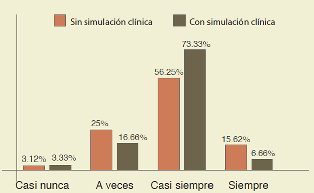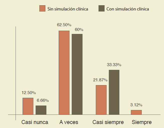 El grupo que no participó de la simulación clínica fue la última generación que no incluyó esta práctica a lo largo de su estancia en la escuela.