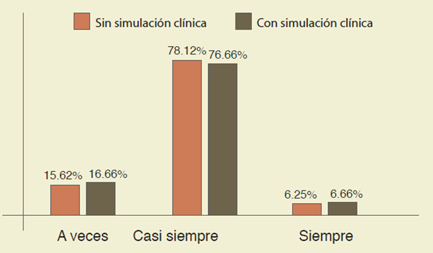 Los resultados de la presente investigación nos hacen reflexionar sobre qué tan bien se está ejecutando la simulación clínica, ya que se debe tener en cuenta que para aprovechar los beneficios de esta, debe cumplir con lo requerido34,35.