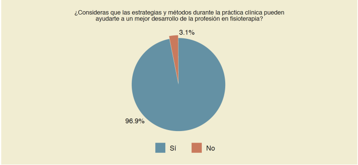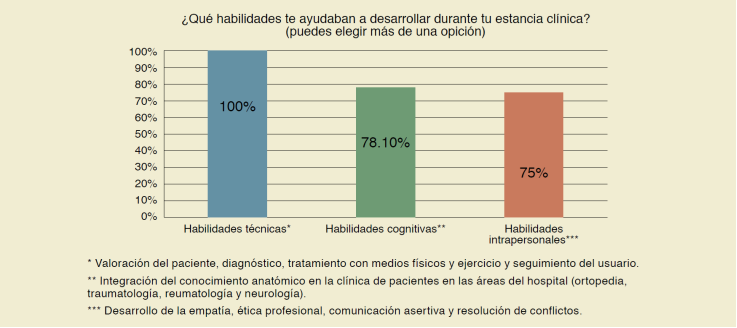 Se ha demostrado que, mediante un adecuado acompañamiento y supervisión durante el periodo clínico, la motivación del estudiante aumenta en mayor medida, confirmando la elección de su carrera y asegurando el desarrollo de habilidades clínicas esenciales para la formación de terapeutas físicos con estándares de calidad25. La supervisión del estudiante mediante el educador o encargado favorece la conclusión de sus destrezas mediante el apoyo y retroalimentación de las actividades que se realizan durante el periodo de prácticas, como menciona Velasco-Gutiérrez et al. (2021), donde mediante el trabajo colaborativo de estudiantes de pregrado en medicina y fisioterapia alcanzaron estándares de calidad cuando se lleva de la mano con un rol guía de profesionales más experimentados, teniendo en cuenta toda la programación pedagógica del educador en un escenario clínico26.