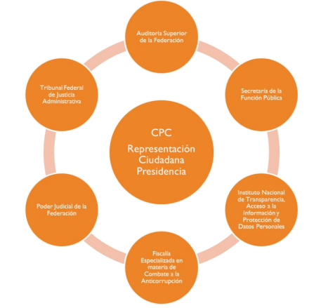 Comité Coordinador (CC), donde están los entes públicos que tienen como una de sus principales tareas el combate a la corrupción y la transparencia; está presidido por el presidente del CPC.