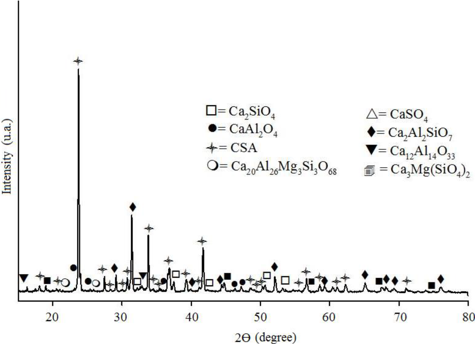 An alternative to partially or completely substitute the use of Portland cement is the manufacture of calcium sulfoaluminate (CSA) cement which presents a crystalline structure that consists of a tridimentional arrangement of AlO4 tetrahedrons interlinked with Ca+2 and SO4