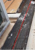 Another place with expressed discomfort related to loss of roof tightness performance was the ENC auditorium (area 5). The internal inspection was performed on 11/13/2018 for the verification of reported infiltrations. In the auditorium ceiling, it is possible to see marks of freshly dried gutters near a beam, including the puddles on the floor. Figure 7 and Figure 8 below illustrate such spots that indicate the water path and the formation of puddles.