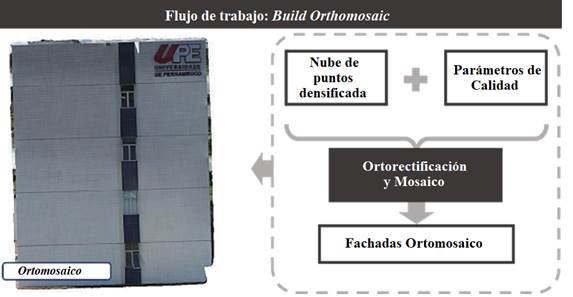 Para un resultado más perspicaz, fueron criados los orto mosaicos de cada fachada de la edificación. Esas imágenes orto rectificadas alcanzan la calidad suficiente para el procedimiento de detección de manifestaciones patológicas por inspección visual.