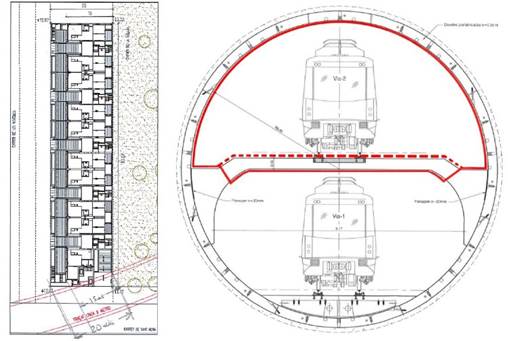 The objective of this work is to find that the tunnel is not structurally affected during the construction period of the building, through the implementation of sections of the former in which the microdeformations that occur are measured, and which are compared to those of the model. In this way, ovalizations and tensions can be observed in the vault during the different phases of the construction process.