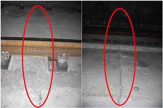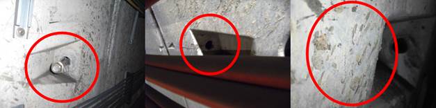 In the initial reading of zeros with optical fiber a catalogue of current dysfunctions (cracks, humidity, coqueries, anomalous roughness, etc.) is made. Figure 4, Figure 5 and Figure 6 show some of the found dysfunctions in the initial inspection.