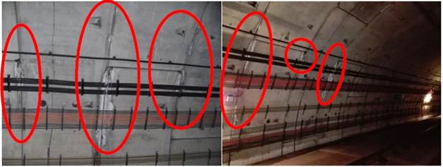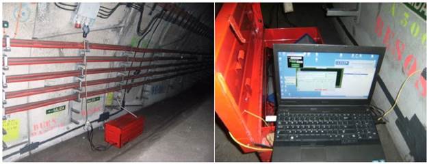 Figure 11 shows the adhesion procedure performed with the optical fiber on the traffic lane steed of track 2 and in the tunnel vault.