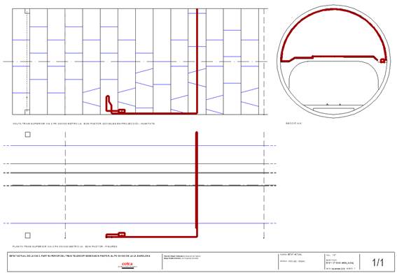 Figure 7 General tunnel scheme. Elevation and plant. The red line indicates the path of the optical fiber.