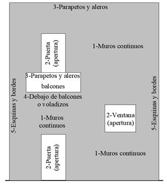 Figura 2. Regiones tipificadas de la fachada Fuente: Gaspar y Brito (2005) - modificado por el autor