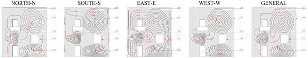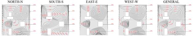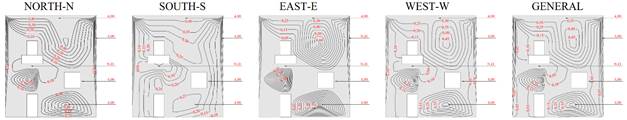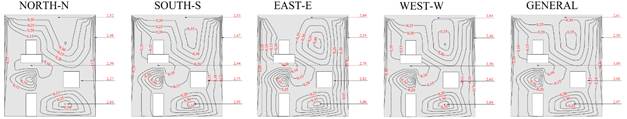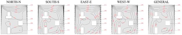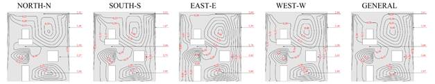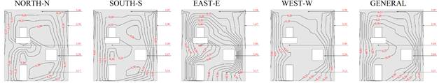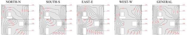 El Potencial de Degradación (DP) en cada región tipificada del edificio se presenta en las Figuras 8 y 9, para cada orientación solar específica y general, para los Métodos de Intensidad e Incidencia.