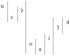 La Figura 3 muestra una división de constituyentes en núcleo y márgenes, es decir vocales versus consonantes, más los tonos. En este ejemplo, la africada alveolar sorda /c/ (representada con el Alfabeto Fonético Americano; /͡ts/ en el Alfabeto Fonético Internacional) constituye el elemento principal del inicio silábico mientras que la glotal y la nasal son elementos subordinados.
