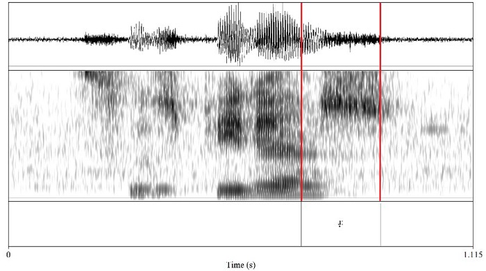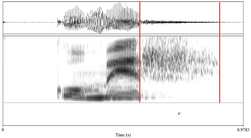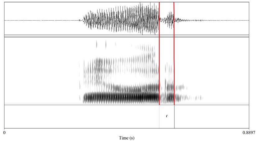 En la Figura 1, se presenta una realización percusiva canónica de /ɾ/ en coda final de palabra.1