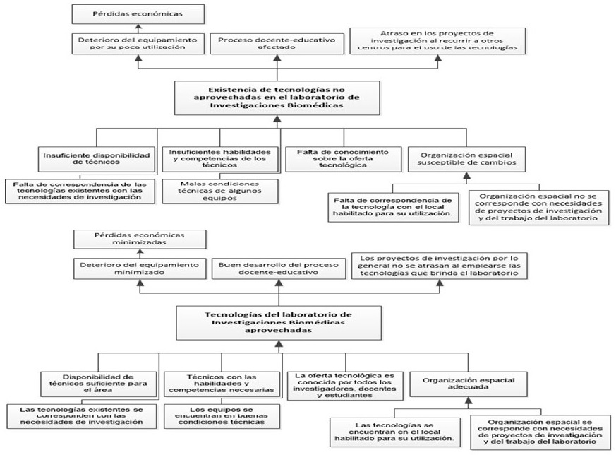 A partir de las causas que generan el problema y los objetivos a donde se desea arribar, se puede plantear como alternativa de solución un proyecto de mejora para la reorganización tecnológica y espacial del Laboratorio de Investigaciones Biomédicas, que implicará obtener una nueva y adecuada distribución espacial, contratación y capacitación de los técnicos, mantenimiento y arreglo de los equipos, y divulgación de la oferta tecnológica.