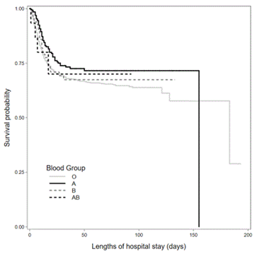In conclusion, we found evidence of a significant association between ABO blood type and COVID-19 in-patient death. Blood group A may be less likely to experience death during hospitalization compared with group O. There were no significant associations between blood groups AB and B with the risk of COVID-19 death.