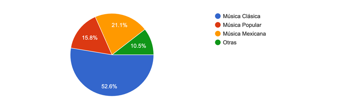 Finalmente, la mayoría de los participantes opinó que se debería de difundir la música clásica por tener una estructura académica, y lograr con ella que los estudiantes adquieran el conocimiento de un repertorio global que les brinde la oportunidad de integrarse en cualquier orquesta o continuar los estudios formales en la música, teniendo como primer acercamiento las oportunidades que los coros y orquestas juveniles pueden ofrecer como un derecho cultural que todo ser humano debería tener (ver Figura 5).