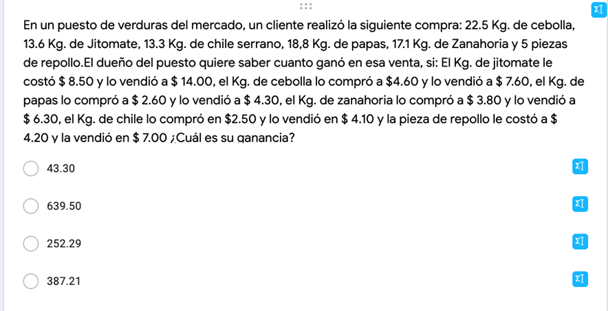 Como lo sugiere Godino et al. (2015), en cada ítem incluimos la solución esperada, así como tres respuestas distractoras incorrectas: los objetos y los procesos que se manifiestan para la resolución, el nivel de dificultad correspondiente a la actividad académica y las categorías del conocimiento didáctico-matemático implicadas según la Tabla 1.