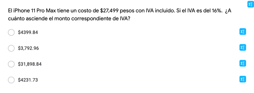 Debido a la pandemia, el instrumento fue aplicado a través de Google Forms, herramienta que permitió que los ítems se ordenaran de forma aleatoria y fueran respondidos en un tiempo limitado. En la Figura 1 se estructura el conocimiento matemático común, enfocado en la faceta epistémica, es decir, reconocimiento de procesos algebraicos y aritméticos (conceptos, procedimientos, propiedades, generalización, etc.).