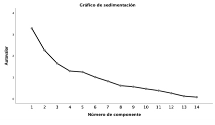 En la Figura 5 se observa cómo el instrumento fue sometido a la prueba de unidimensionalidad del constructo a través del estudio del gráfico de sedimentación en el programa SPSS.