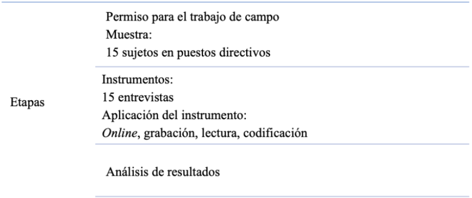 En este apartado se explican las fases que se llevaron a cabo en la investigación, que tuvo como objetivo analizar las afectaciones en la gestión administrativa derivadas de la pandemia covid-19 desde la perspectiva del personal directivo de las instituciones de educación superior.