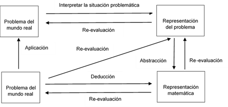 Como puede observarse en la Figura 1, la modelación matemática no es un proceso lineal, sino un ciclo que parte del mundo real y regresa a él e involucra procesos cognitivos.