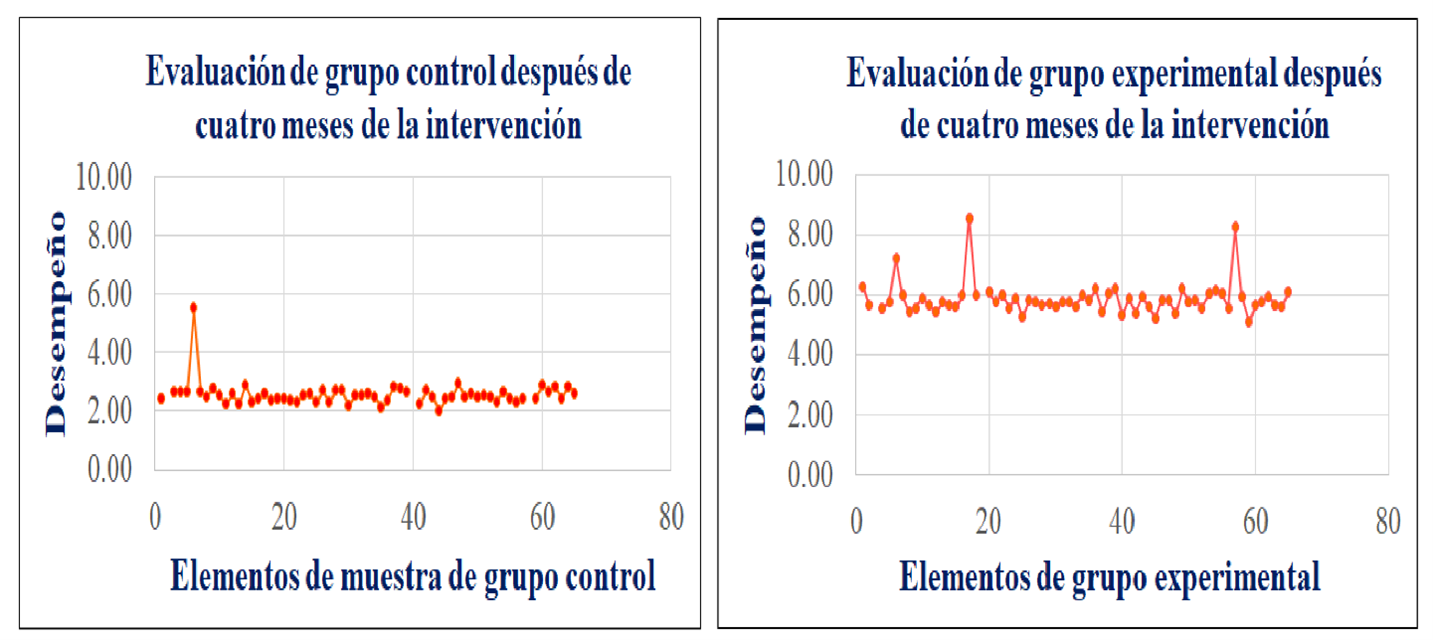 Figura 7 Desempeño de los grupos control y experimental, después de cuatro meses de la intervención