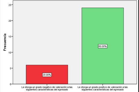 Respecto al segundo de los factores según la Figura 3, el 80% de los empleadores percibe de manera positiva que los egresados tengan las características agrupadas en el factor dos; el 20% restante no lo aprecia de esta manera.