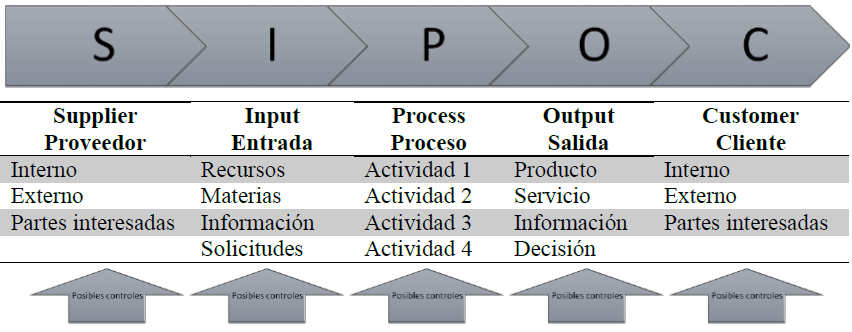 El enfoque a procesos SIPOC (Supplier, Input, Process, Output, Customer), adoptado por la Norma ISO, consta de cinco elementos: Proveedor, Entrada, Proceso, Salida y Cliente. A través del establecimiento y el seguimiento sistemático de las interacciones entre estos elementos y los procesos, y mediante la aplicación del ciclo de mejora en todo el SGC, se busca alcanzar los objetivos estratégicos establecidos por la organización.