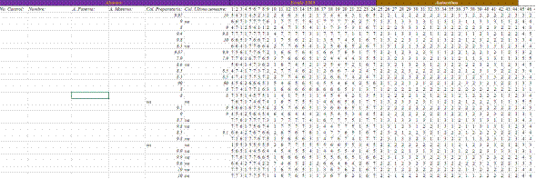 | Fracaso | 26, 31, 36, 41, 44 | 5 baja - 15 alta |
