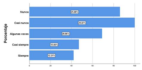 En cuanto a los conocimientos y aprendizajes que obtuvieron los estudiantes sobre las problemáticas e impactos causados por la pandemia de la covid-19, el 32.56 % consideró que nunca fueron abordados, el 28.20 % que casi nunca, el 15.41 % que algunas veces, el 12.21 % que casi siempre, y el 11.63 % opinó que siempre obtuvieron conocimientos y aprendizajes sobre las problemáticas provocados por la actual pandemia (figura 3).