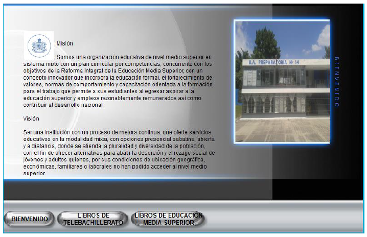 A continuación, se presenta una descripción gráfica de la Biblioteca Digital. Cabe mencionar que esta se desarrolló con el software Autoplay Media Studio, versión 8, personal edition. Una vez iniciada la aplicación, se muestra la ventana principal de la aplicación (figura 3).