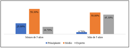 Figura 3 Uso de TIC por experiencia en la docencia