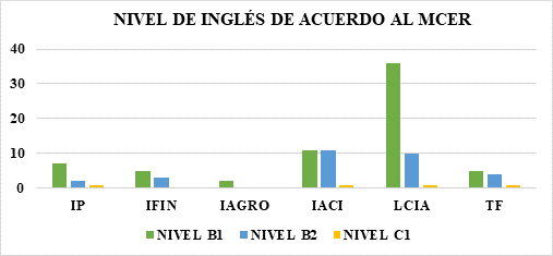 En la figura 1 se detallan los resultados alcanzados de acuerdo con el nivel de dominio del idioma inglés de los estudiantes egresados con base en el MCER. Como se puede observar, el nivel de inglés más representativo es el B1.