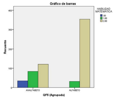 Por otro lado, con la finalidad de profundizar en el efecto de las habilidades matemáticas de manera independiente con relación con el alfabetismo financiero, se llevó a cabo la construcción de una tabla de contingencia.