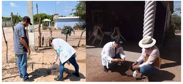 Figura 2 Toma de muestras de agua de la llave en comunidades rurales en el municipio de Ahome, Sinaloa.