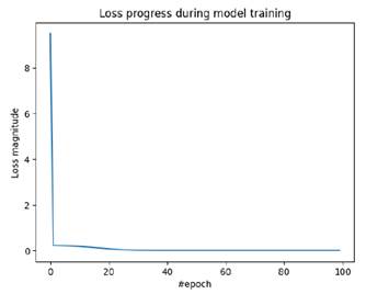 Obtaining the model through the Neural Network: The neural network training used the dataset described in the previous step, which was employed to estimate the model parameters corresponding to the underlying equation. Upon completion of training, the trend of the loss function over time was observed as the model minimized error, ultimately converging to a final loss value close to zero.