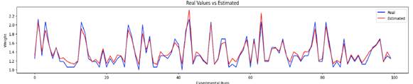 Verification of the artificial neural network training: As shown in Figure 7, the time evolution of the model's estimated data closely aligns with the real data. The mean squared error between these two datasets is 0.04.
