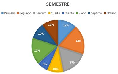 En el anterior gráfico se puede observar que, en el presente estudio participaron alumnos de la Licenciatura en Nutrición de varios semestres, sin embargo, cabe mencionar que no participó la totalidad de la población del alumnado, identificando una participación más activa por alumnos de tercer semestre con un 17%.