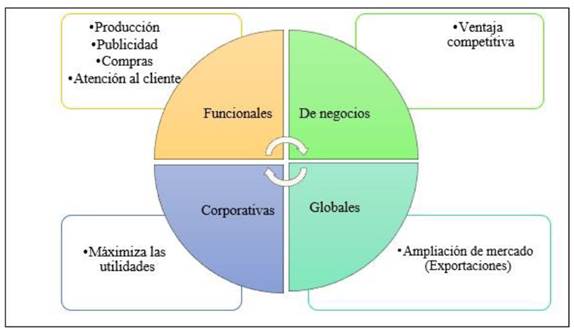 Corporativas, definen el negocio que permitirá maximizar la rentabilidad, hacer crecer las utilidades, y lo que se debe hacer para ingresar en nuevos mercados, o alcanzar la ventaja competitiva.