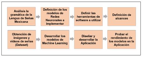 Respecto al diseño de la investigación, el presente estudio se basa en un enfoque cuantitativo experimental, ya que busca la presición del sistema de reconocimiento de la Lengua de Señas Mexicana (LSM) a través de modelos de Machine Learning (ML) y su implementación en una aplicación móvil. Para ello, se desarrolló una metodología estructurada que incluye la recolección de datos, el desarrollo de modelos de aprendizaje profundo y la evaluación del rendimiento del sistema en distintos escenarios educativos (Salgado et al., 2024).