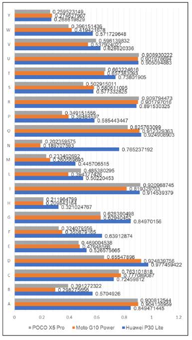 La implementación de esta metodología permitió el desarrollo de un sistema de traducción de la LSM con un alto nivel de precisión, basado en modelos optimizados para su ejecución en dispositivos móviles. La combinación de aprendizaje profundo y tecnologías accesibles ofrece una solución innovadora para la educación inclusiva de personas sordas, tabla 2 lista los smartphones utilizados.