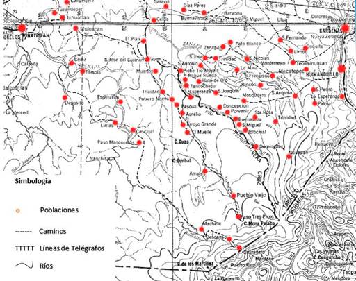 Los ríos continuaron siendo las principales vías de comunicación y, por tal, no perdieron su centralidad en la organización espacial, como antaño, en la centuria decimonónica el río Tonalá-Tancochapa-Pedregal fue usado por la población regional para la instalación de “cuarteles rebeldes” y movilizaciones contra el sistema esclavista que imperaba en las monterías18:
