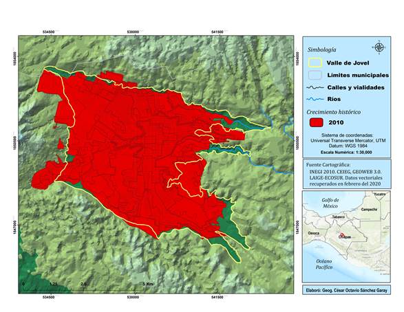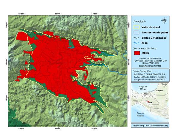 Como podrá observar el lector, cada una de las partes del texto está guiada por las categorías mencionadas, pero conforman una suerte de diálogo con la historia -o más exactamente la etnohistoria, por el sentido en que aquí se aborda, como explicación del presente-, cierta sociología de la globalización y la etnografía.7 En el plano temporal, según la época que se aborde, cierto grupo de categorías tiene primacía sobre las restantes, pero en conjunto se busca hacerlas coincidir en una sola interpretación coherente de las relaciones socio-territoriales entre el barrio y la ciudad. Para esta visión integrada a través del espacio-tiempo, el concepto de “larga duración” de Fernand Braudel (Paniagua y Perezgrovas, 2019),8 una cartografía sustentada en imágenes satelitales (inéditas) y lo que aquí se denomina experiencia vivida han sido fundamentales.9 Todos estos argumentos e instrumentos recorren analíticamente la ciudad de San Cristóbal: el “tiempo largo” permite explicar el cambio en profundidad de la historia barrial, aunque también, a través de la categoría del “tiempo corto”, su historia reciente y vida cotidiana;10 la cartografía ilustra gráficamente el cambio territorial del “valle de Jovel”, desde que constituía un espacio verde hasta transformarse en otro sobrepoblado padeciendo una crisis de territorio;11 por último, la experiencia vivida conecta la memoria del autor con su propia interpretación de los hechos.